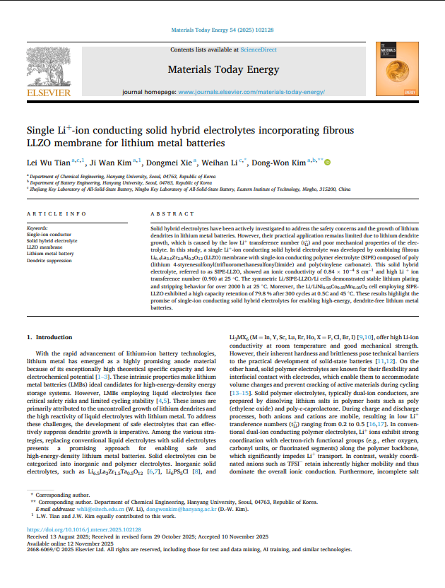 [Prof. Dong-Won Kim] Single Li+-ion conducting solid hybrid electrolytes incorpo...