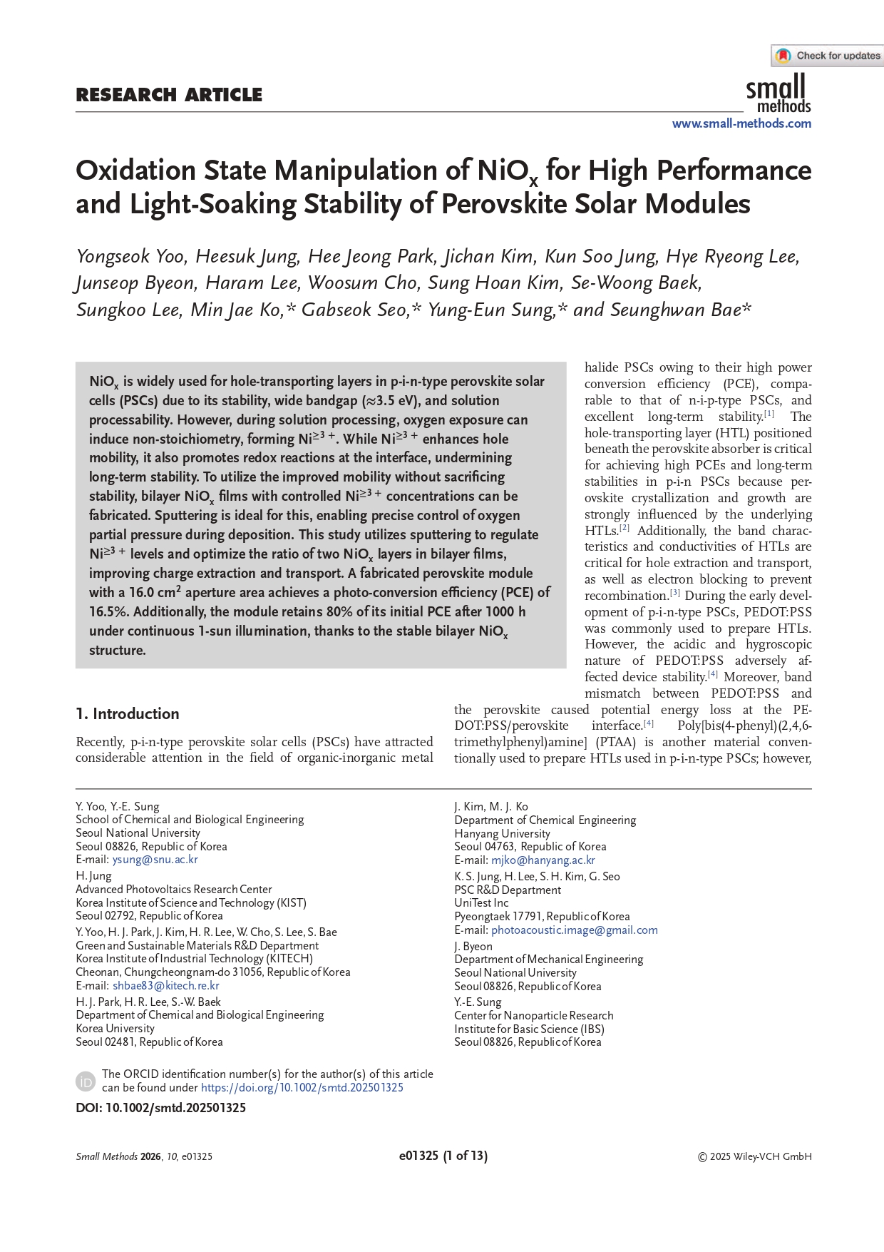 [Prof. Min Jae Ko] Oxidation State Manipulation of NiOx for High Performance a...
