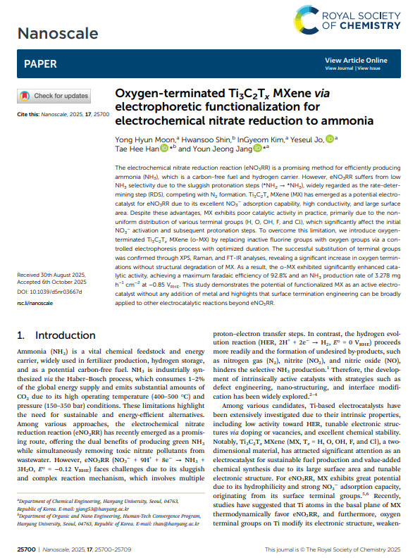 [장윤정교수 연구실] Oxygen-terminated Ti3C2Tx MXene via electrophoretic functio...