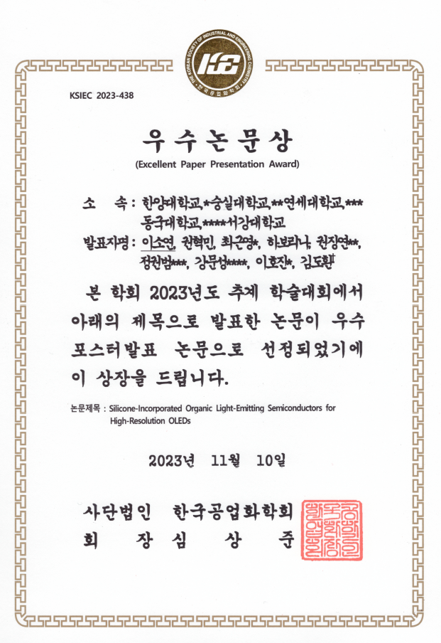 고민재 교수_한국공업화학회_우수 논문상